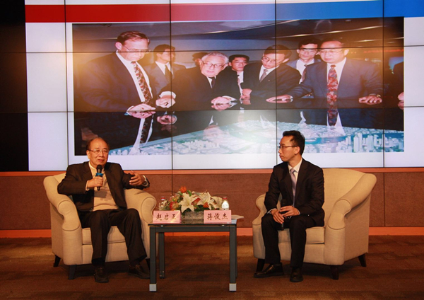 10月25日上午,“文化名家暨四个一批人才”国情研修班开展了一场题为《浦东开发开放》的访谈式教学。此次教学邀请到曾经见证、亲历浦东开发开放这一伟大进程的第一代建设者——原全国政协新闻发言人、原国务院新闻办主任、原中共上海市委常委、原上海市副市长、上海浦东新区第一任党工委书记赵启正。访谈式教学由教研部蒋俊杰教授主持。